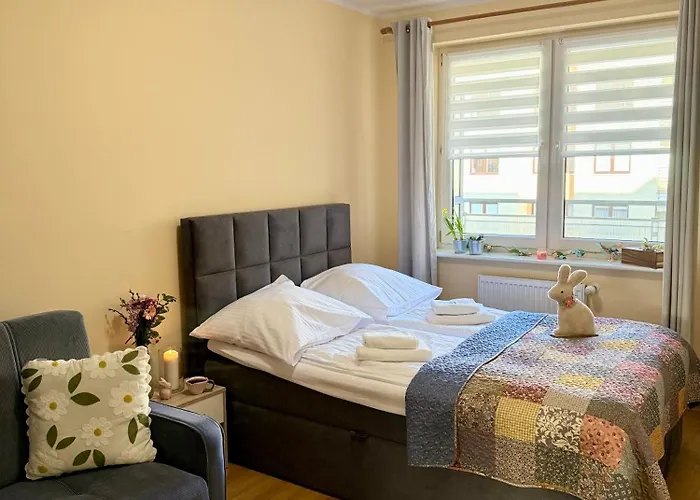 Ten apartament położony jest w dzielnicy Uzdrowiskowa w Kołobrzegu, 2 km od Muzeum 6D. Dotarcie do serca Kołobrzegu zajmie Ci 10 min.